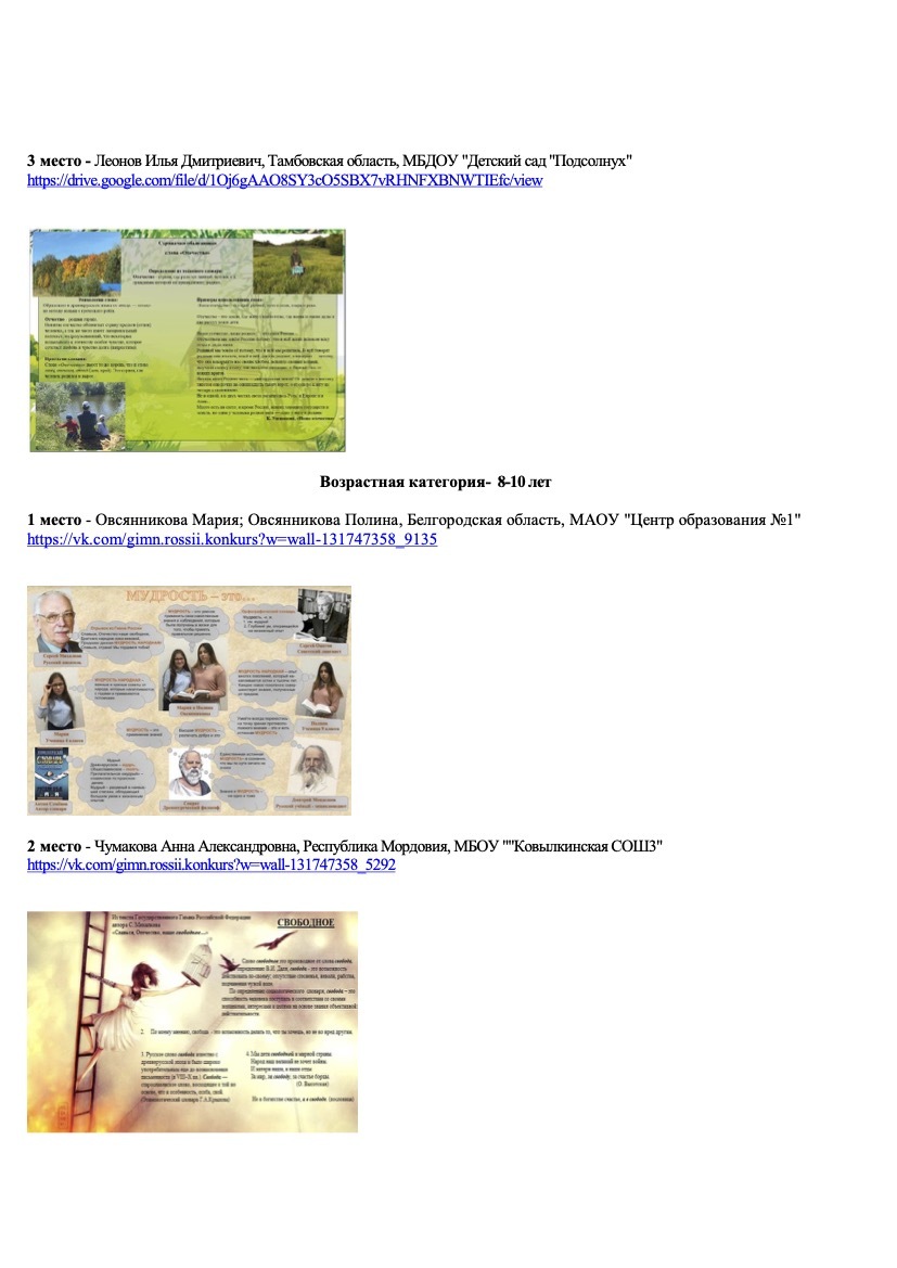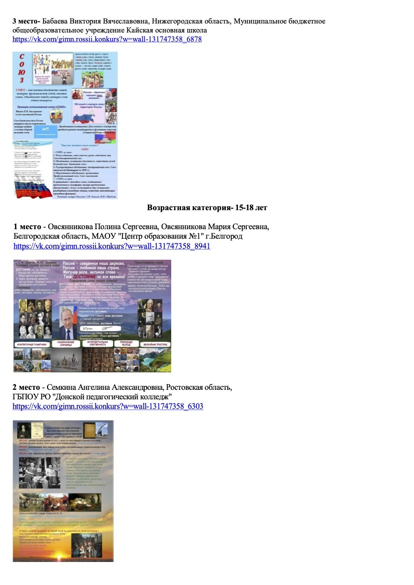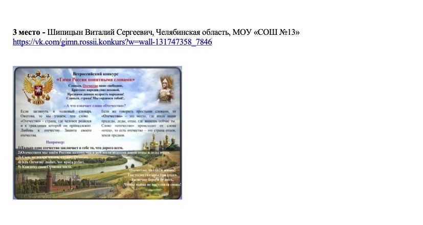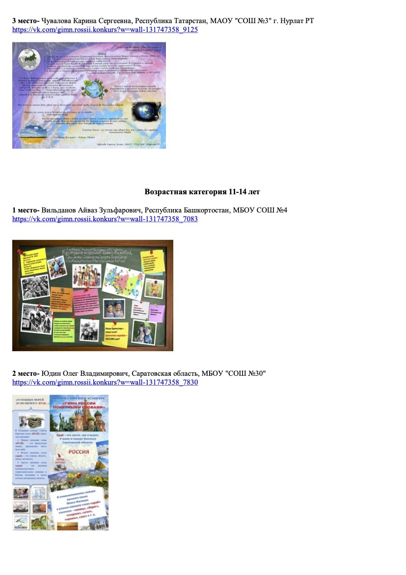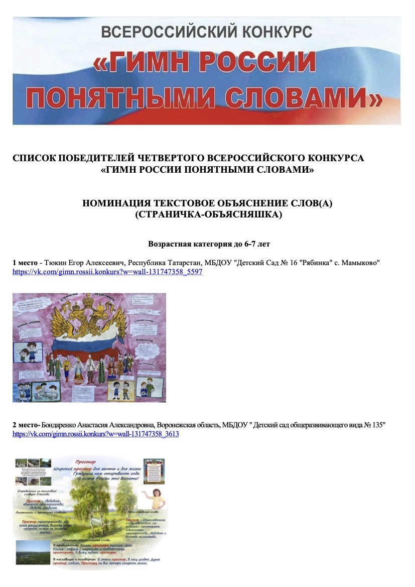Список победителей IV Всероссийского конкурса "Гимн России понятными словами"