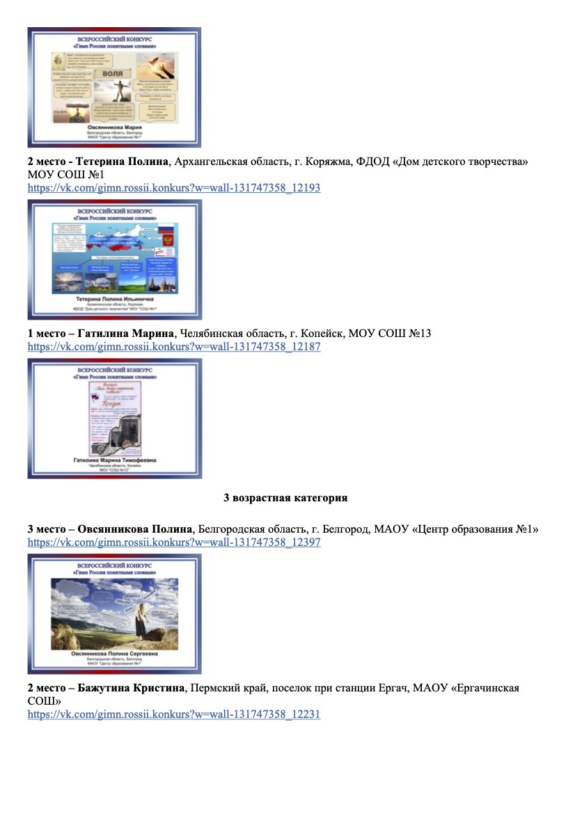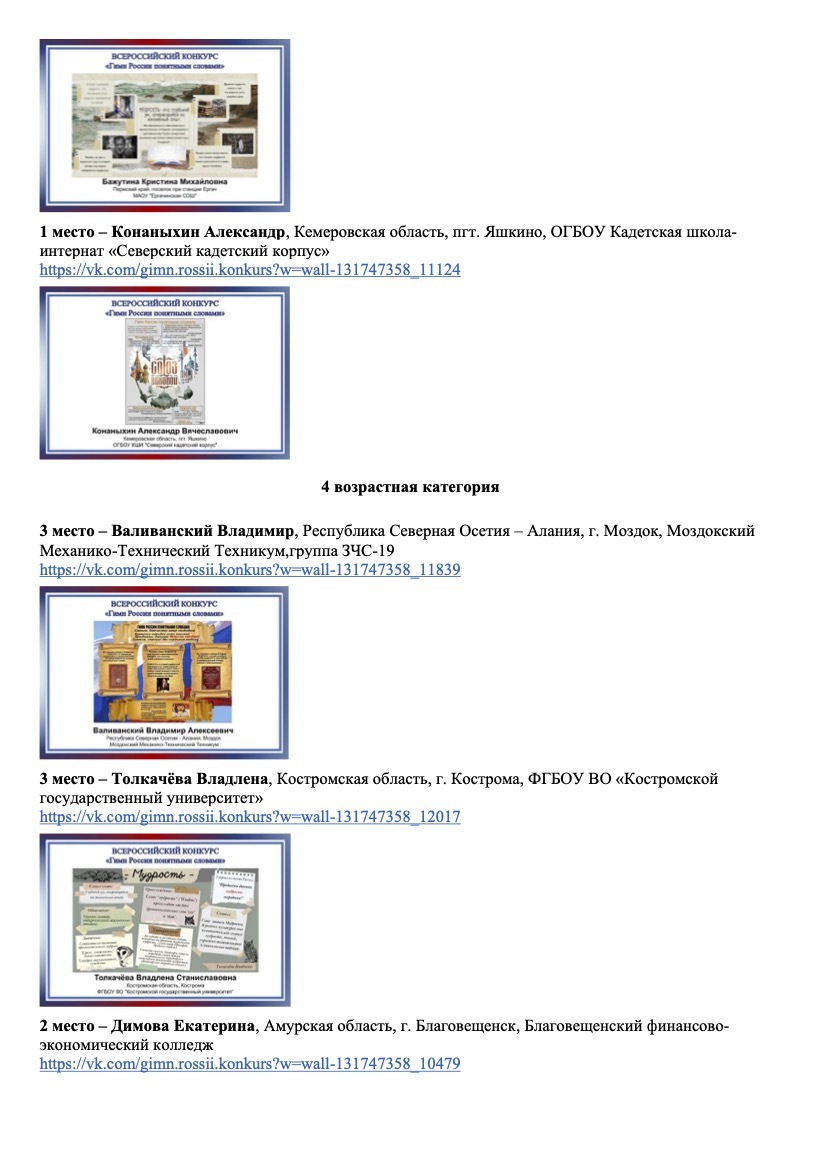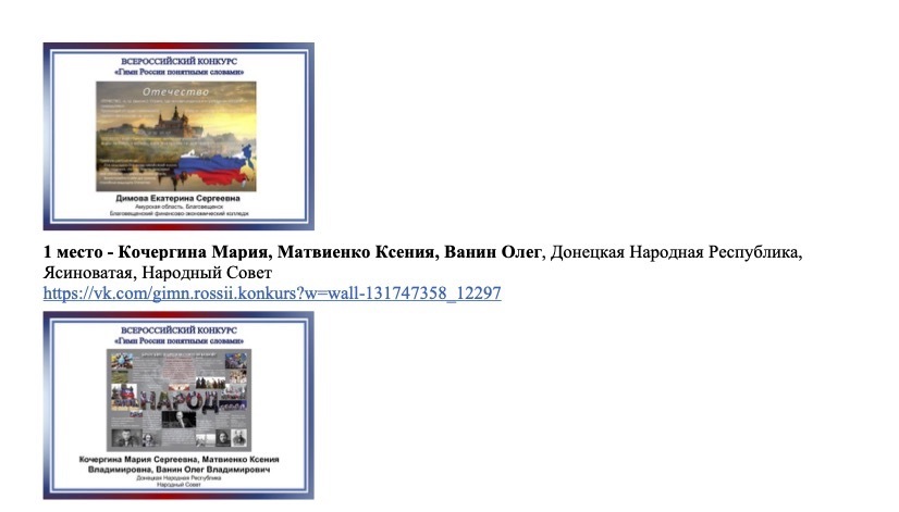 Список победителей V Всероссийского конкурса "Гимн России понятными словами"